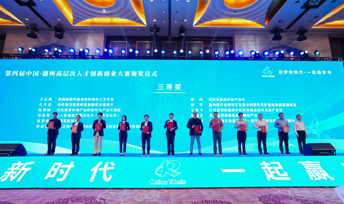 9月27日至28日,以“逐梦新时代·一起赢未来”为主题的第四届中国·德州高层次人才创新创业大赛总决赛、颁奖仪式暨京德科技人才合作交流大会在德州市隆重举行。经过初赛、决赛和排位赛激烈角逐,yd2333云顶集团主站王志刚教授团队参赛项目“高端硫酸钙晶须材料绿色工艺开发”获的创新组三等奖,王烟霞副教授团队参赛项目“糠醛渣木质素的绿色提取工艺开发”获的创新组优胜奖,取得学院在该类赛事新突破。