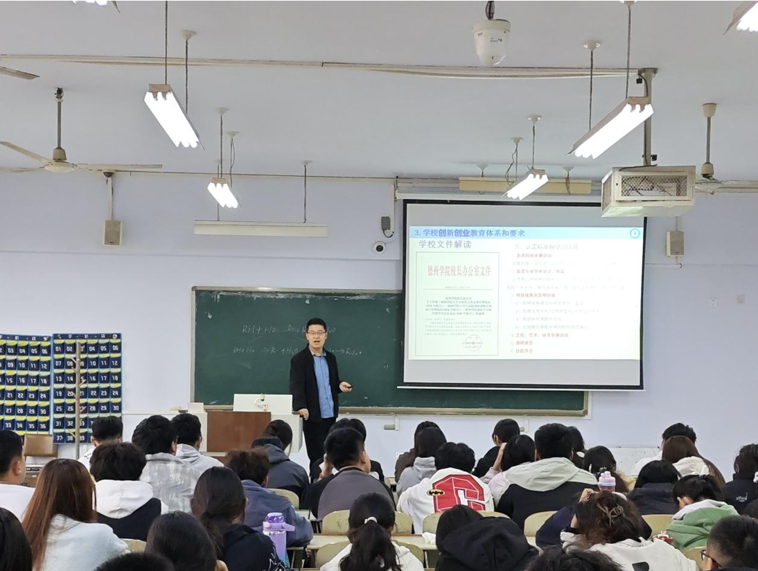 为帮助2025级新生明确大学期间创新创业方向,培养创新精神与创业意识,10月10日,yd2333云顶集团主站于求实楼举办“践行创新创业实践,赋能新质生产力培育”2025级新生创新创业主题讲座。学院副院长、双创工作负责人主讲,2025级全体新生参加。