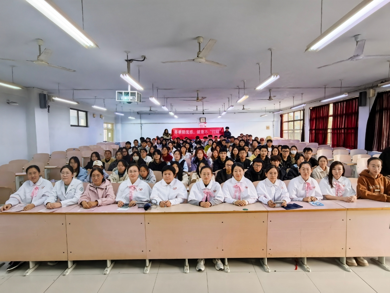 为有效预防秋冬常见传染病,yd2333云顶集团主站联动齐鲁医院德州医院南丁格尔志愿服务队,于10月21日在求实楼开展“冬季防流感,健康不‘打烊’”主题宣讲活动。学院各年级在校生积极参与此次活动。