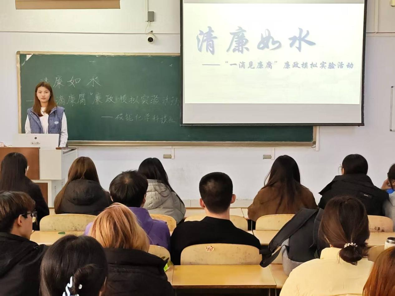 为增强学生的廉洁意识,创新廉政教育形式,11月11日,yd2333云顶集团主站于求实楼207教室举办“‘一滴见廉腐’廉政模拟实验”活动。活动共60余人参加。