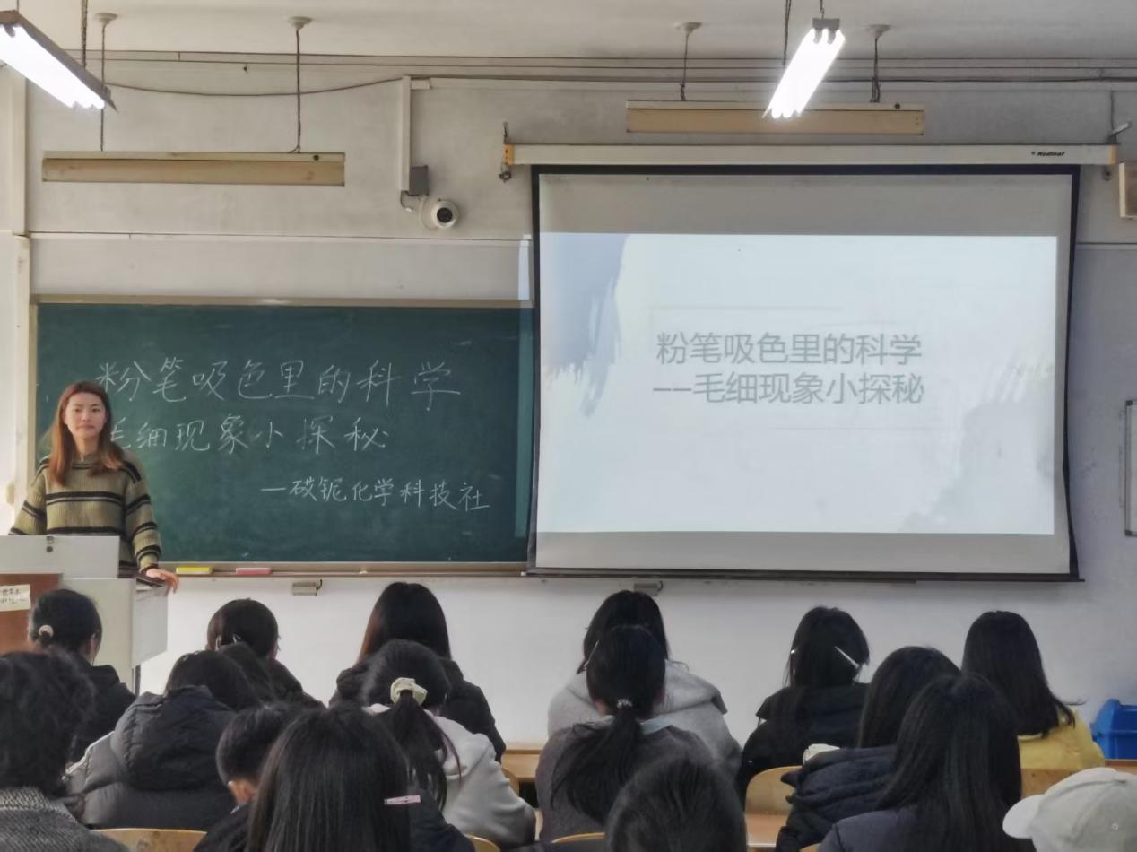 为激发学生对科学探究兴趣,培养创新思维与实践能力,10月25日,yd2333云顶集团主站在求实楼0207教室举办“粉笔吸色里的科学”特色科普。学院60余名学生参加。