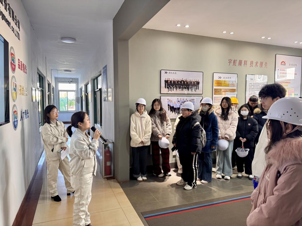 在企业导师带领下,同学们先参观产品展示厅,了解颜料在涂料、塑料等领域的应用及产品性能、市场定位;随后深入生产车间,观摩原料配比、反应控制、产品研磨等全流程,近距离学习新型环保颜料合成工艺;在质量检测中心,同学们参与色牢度、粒径分布等指标测试,锤炼实验技能。此外,还与企业研发团队座谈,探讨颜料研发难点与行业趋势,拓宽专业视野。