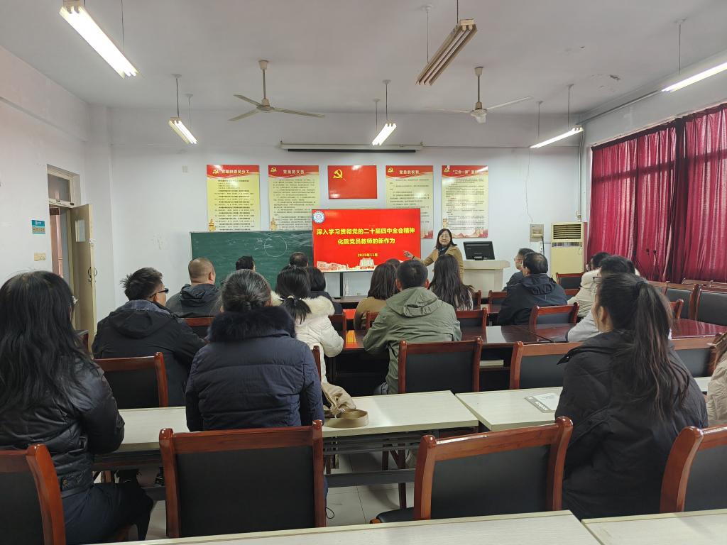 为深入学习贯彻党的二十届四中全会精神,推动学院党建工作与事业发展深度融合,11月25日,yd2333云顶集团主站院长围绕“深入学习贯彻党的二十届四中全会精神——化院党员教师的新作为”主题,为全院党员教师讲授了一堂内容丰富、思想深刻的专题党课。