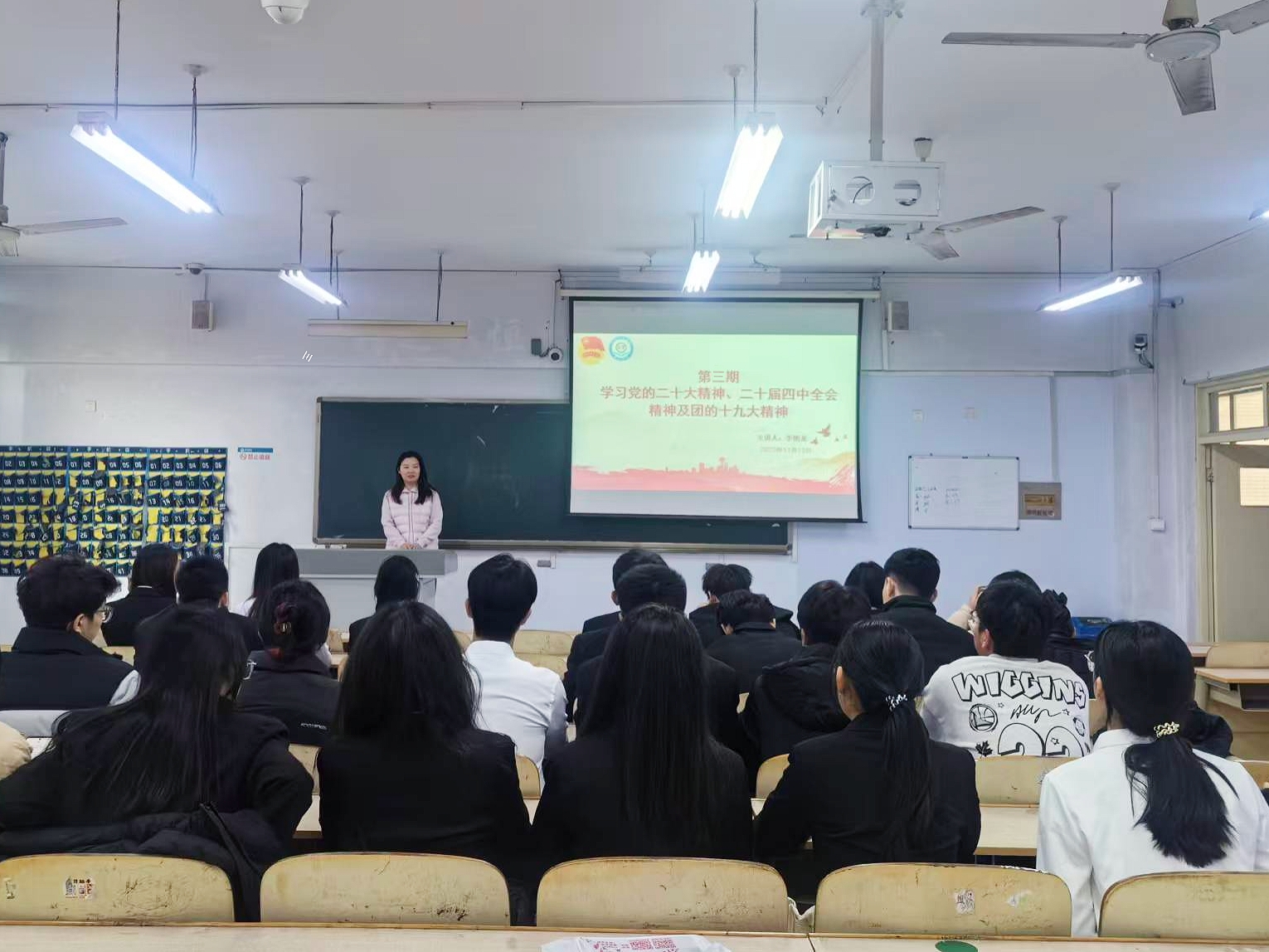 学工办主任围绕“理论铸魂·青春建功”这一主题,系统解读了三大精神核心要义,深入剖析了党的二十大精神中关于青年发展的战略部署,详细阐释了党的二十届四中全会对于国家治理体系和治理能力现代化的新要求,并结合共青团工作实际,对团的十九大精神进行了解读。通过案例分析、互动问答等形式,引导学员们深刻理解新时代青年的历史使命与责任担当,鼓励大家将学习成果转化为实际行动,在科技创新、社会服务等领域勇当先锋。